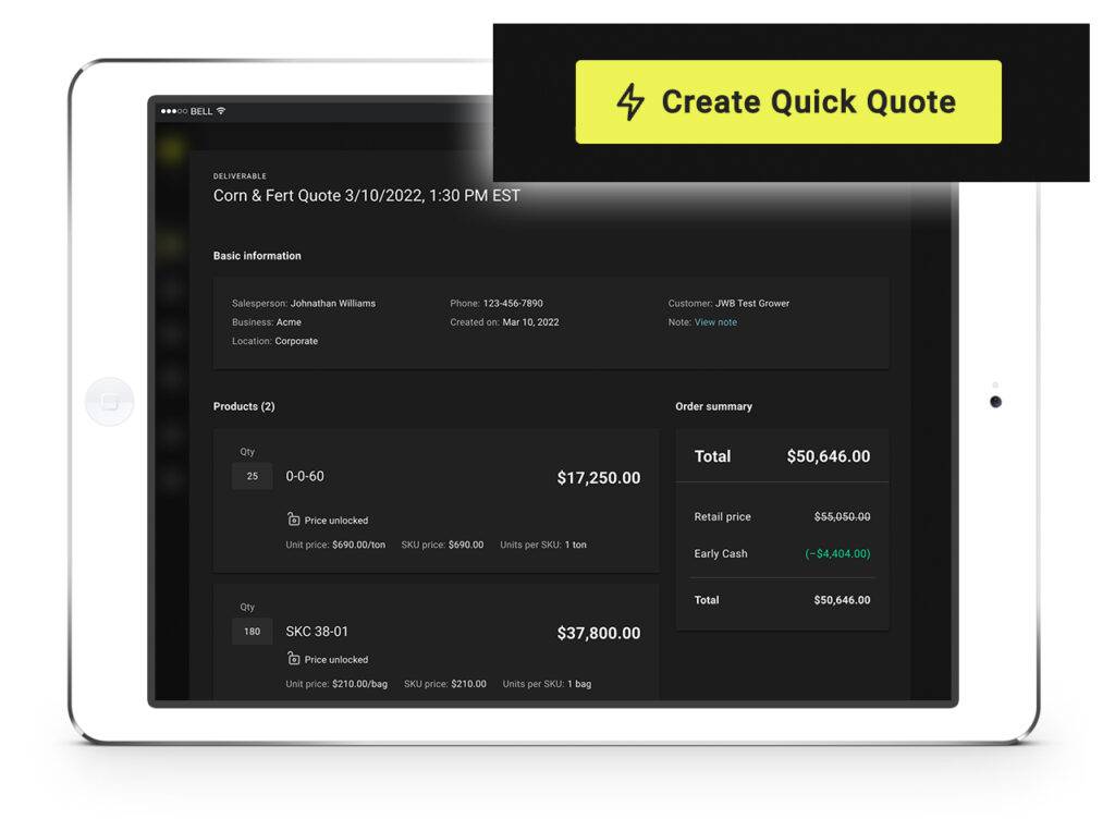 - Easily build quotes for customers without having to go through the full Farm Plan process.